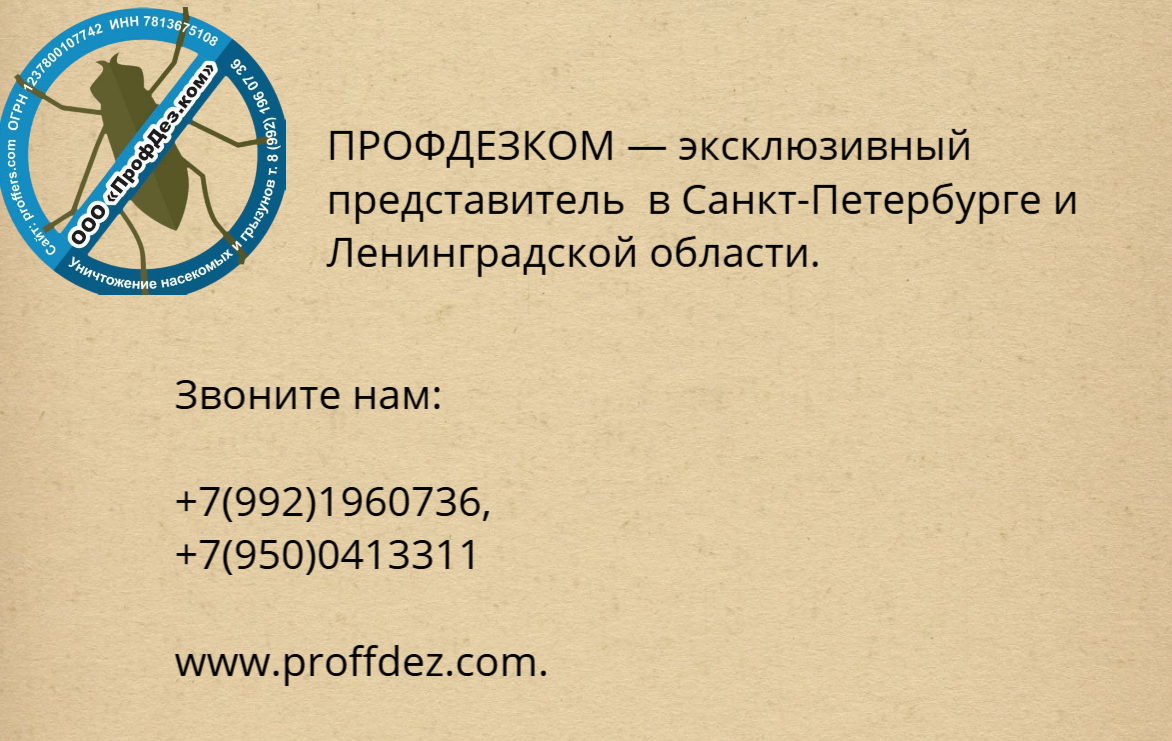 Компания «ПрофДезКом» - первая на рынке услуг по дезинсекции и дезинфекции помещений. Мы обрабатываем как квартиры, дома и офисы, так и помещения госучреждений а так же любые производства в Санкт-Петербурге и Ленинградской области.